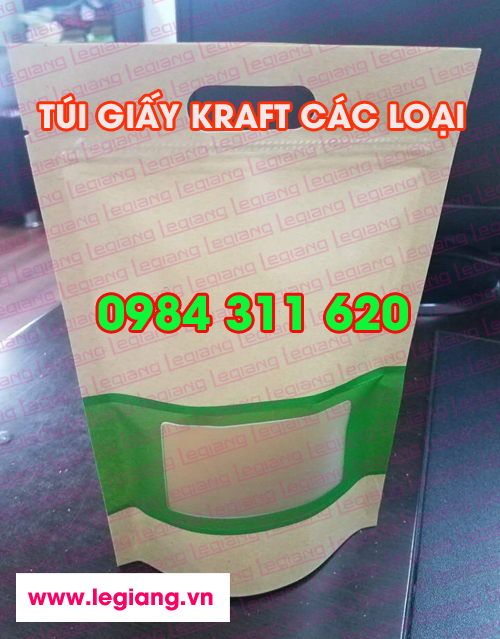 Túi giấy Kraft có cửa sổ, thể hiện được sản phẩm bên trong, hiệu ứng giấy thân thiện môi trường, trang nhã. Zipper đóng mở tiện lợi, túi đứng. bán túi giấy kraft